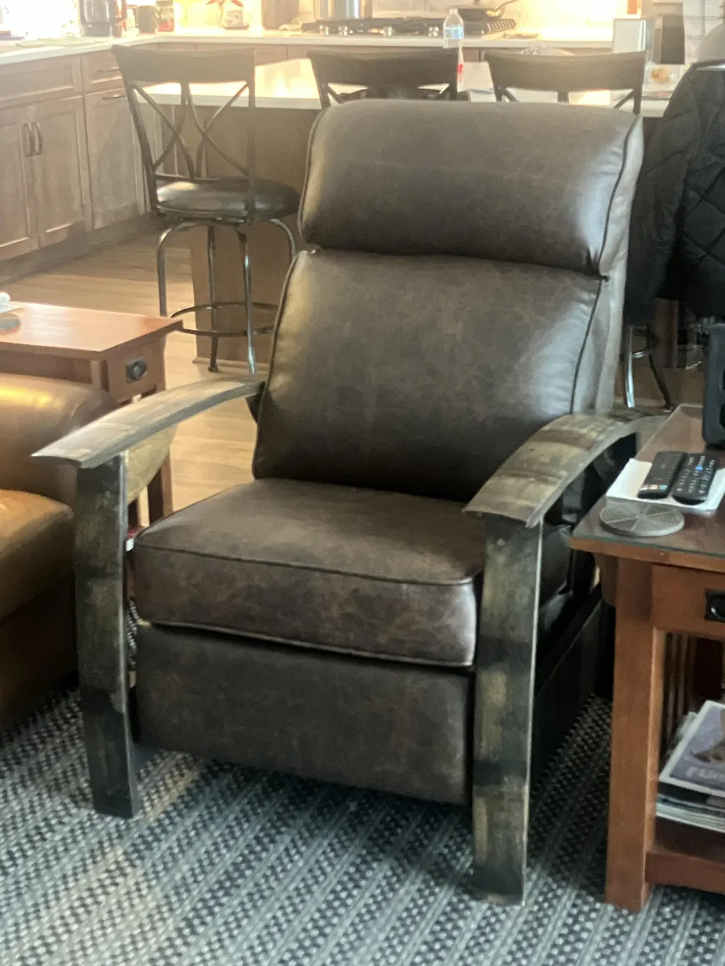Each Bad Ass Recliner piece is unique with no two pieces looking exactly the same. We use real wood, real lather and everything is hand-crafted in the USA. While your recliner will of course use the same materials and model, the details will differ due to the natural differences in real wood and leather finish.